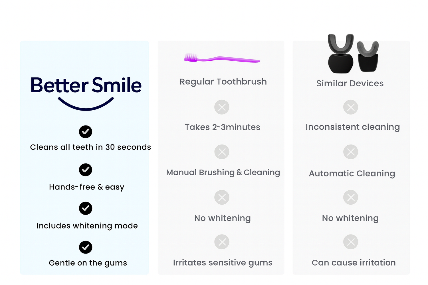 Better Smile’s 360° Ultrasonic U-Brush uses 48,000 sonic vibrations per minute to clean every surface of your teeth — hands-free and perfectly timed for healthier gums